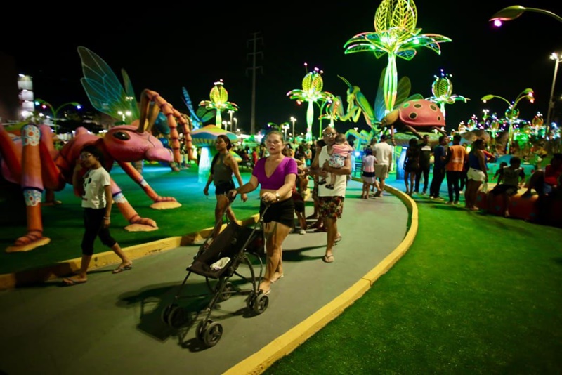 Na quinta-feira (10), a Prefeitura de Manaus fez a inauguração da segunda etapa do parque, com os animais cênicos de insetos, orquidário e aves, somando mais 500 elementos lúdicos e esculturas, com iluminação especial e 5 mil metros de grama sintética. Cenário de sonhos, o parque tem entrada acessível para Pessoas com Deficiência (PcDs) e é totalmente gratuito, contando ainda com a maior praça molhada da capital, de 3,6 mil metros quadrados, com uma lâmina de 25 centímetros de altura da água.