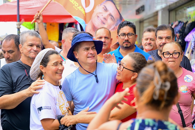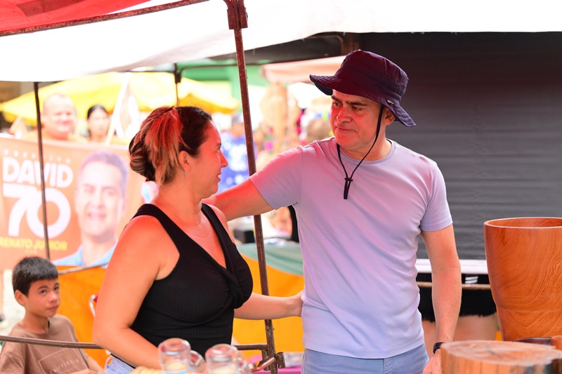 Na manhã deste domingo (20/10), David Almeida (Avante), atual prefeito de Manaus e candidato à reeleição, percorreu a tradicional feira da Avenida Eduardo Ribeiro, no Centro de Manaus, onde foi recebido com entusiasmo pelos permissionários e pela população, que expressaram satisfação e apoio ao trabalho realizado em sua gestão.