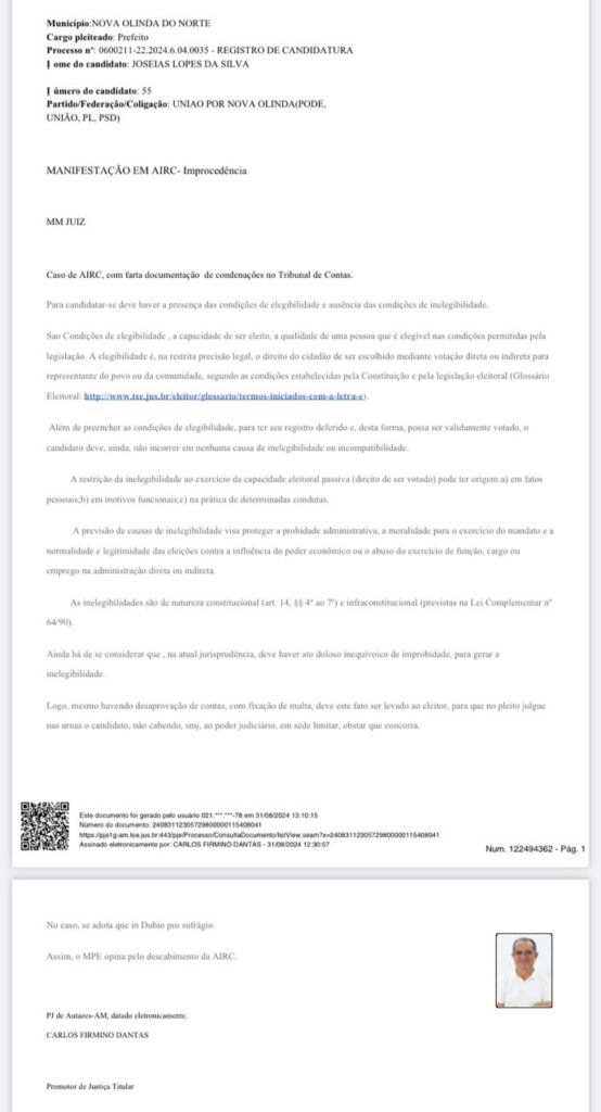Com a derrota eminente de sua aliada Araci Cunha, o prefeito de Nova Olinda do Norte, Adenilson Reis usa tática de confundir o eleitor, espalhando em grupos de WhatsApp e redes sociais uma suposta irregularidade no registro de seu adversário Joseias Lopes.