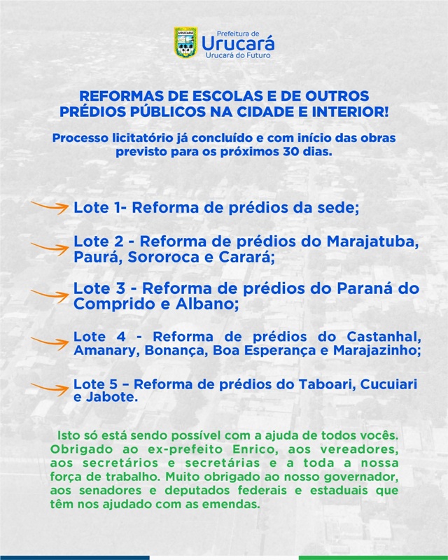 #UrucaráDoFuturo #PrefeituraDeUrucará #TrabalhoQueTransforma #Educação #Infraestrutura #Avanço
