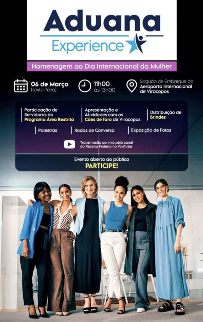 Próximos passos e protagonismo nacional em Viracopos A agenda de mobilização da Virada Feminina expande suas fronteiras e não para no Amazonas. Nesta sexta-feira, dia 6 de março, a organização estará presente no Aeroporto Internacional de Viracopos, em Campinas, para o lançamento do projeto Aduana Experience em uma edição especial em homenagem ao Dia da Mulher. O evento será transmitido ao vivo pelo canal oficial da Receita Federal no YouTube, com a proposta de transformar o maior hub de cargas do país em um palco de cidadania fiscal e conscientização. O projeto unirá a excelência operacional da Aduana ao compromisso social da Receita Federal, em parceria com a Polícia Federal e a Polícia Civil. A programação apresentará iniciativas vitais de equidade de gênero, como o CMEDI, o Receita por Elas e o Aduana por Elas, além de promover painéis sobre temas sensíveis, a exemplo do tráfico humano e do estelionato sentimental, popularmente conhecido como golpe do amor. A presença de lideranças femininas na linha de frente de um órgão vital para o Estado brasileiro carrega um peso simbólico imensurável, representando uma mensagem de força e acolhimento para milhares de cidadãs que acompanham o trabalho da instituição. Com um diferencial estratégico de inovação, o episódio de lançamento será gravado, editado e finalizado em tempo real durante as palestras. Após a apresentação das condutoras da equipe K9, o vídeo oficial será exibido em primeira mão. O material contará com intervalos temáticos sobre operações de repressão, destinação de mercadorias apreendidas para situações de catástrofes e o programa Receita Cidadã, sendo amplamente distribuído por meio de um QR Code para alcance e engajamento nacional.