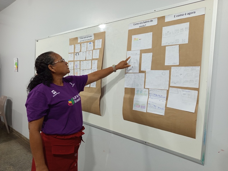 Já na segunda oficina, “Memórias – De Si e do Seu Território”, os educandos refletiram sobre as transformações de seus bairros e comunidades, resgatando memórias e fortalecendo o sentimento de pertencimento. A atividade também incentivou a conexão entre conhecimentos práticos e conteúdos escolares.