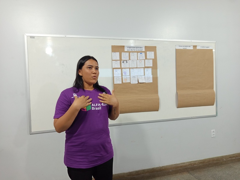 “Eu gostei demais das atividades porque o meu sonho é aprender mais. Quero escrever um diário do início da minha vida até me formar, com toda a minha história para deixar para meus netos e bisnetos. Também sonho em ser professora. Já disse para o meu esposo que agora só vou parar de estudar quando me formar”, relatou.
