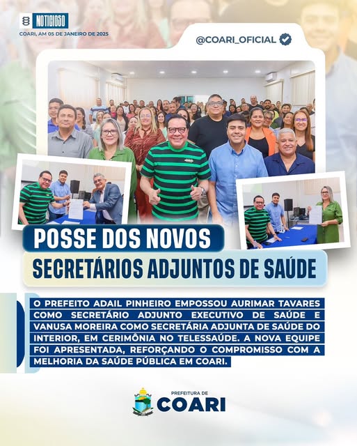 Na manhã deste domingo, 5 de janeiro de 2025, o prefeito Adail Pinheiro deu posse aos novos secretários adjuntos de saúde durante uma cerimônia realizada no auditório do Telessaúde.