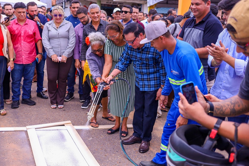 O evento foi realizado no cruzamento das ruas Manoel Marques e Vieira Martins, no bairro Chagas Aguiar, e contou com a presença do prefeito Adail Pinheiro, vereadores, secretários municipais, autoridades locais e representantes da comunidade. A ação é coordenada pela Secretaria Municipal de Obras (Semob).