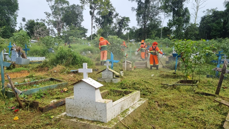 No cemitério, que é um dos maiores da região Norte do país, as equipes atuaram com capinação, varrição, poda de árvores e remoção de entulhos, para garantir um espaço mais organizado e acessível para as famílias que visitam as sepulturas de entes queridos.